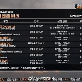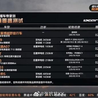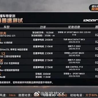 【懂车帝夏测的圈速测试,总榜】总共39辆车,有油车、有电车;有增程、也有插混。有两驱,也有四驱。有轿车、有SUV,也有MPV和皮卡。 这是一场大混战,排名是次要的,重点是看看亮点。